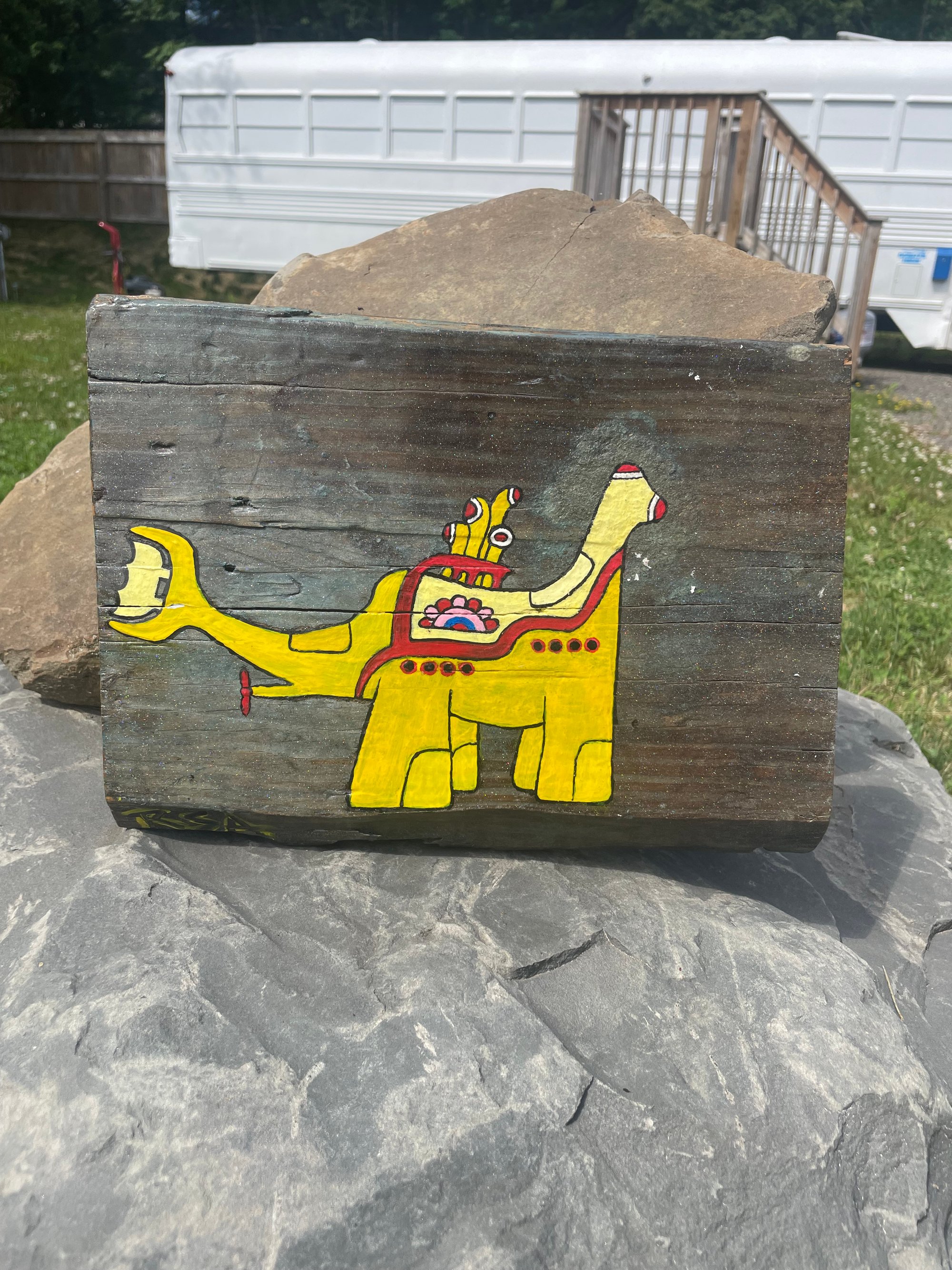This piece was born from Imagine music festival in Georgia. The piece of wood was found by the main stage. The Beatles have been a major part of my spiritual awakening. Along with the electronic music festivals. Comes with free stickers!